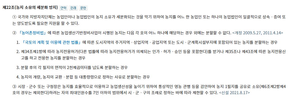 ② 농지법 제22조 농지분할 금지 예외사유