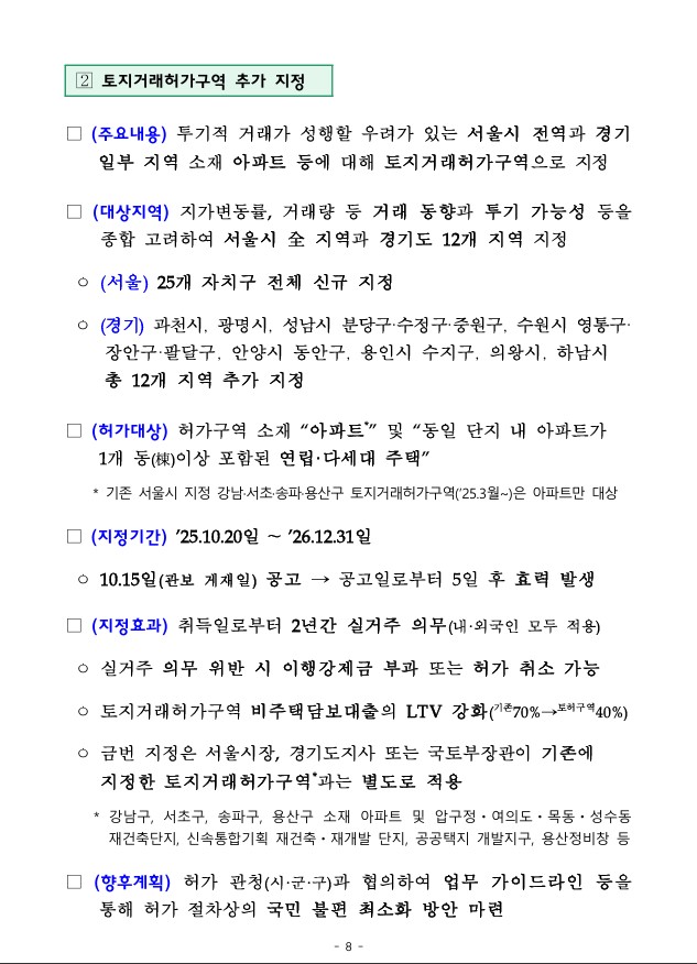 2025년 10월 15일 정부는 **‘주택시장 안정화 대책’**을 발표했습니다.